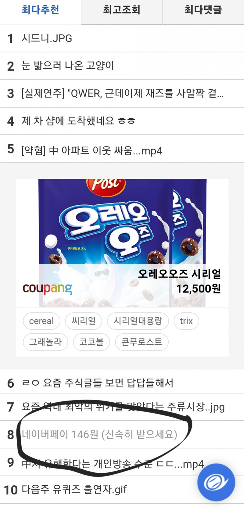 146포인트에 최다추천ㅋㅋㅋ 글3개쓰면 모으는데 ㄷㄷㄷ