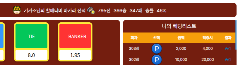 승률은 안좋은데 마틴으로 따는중