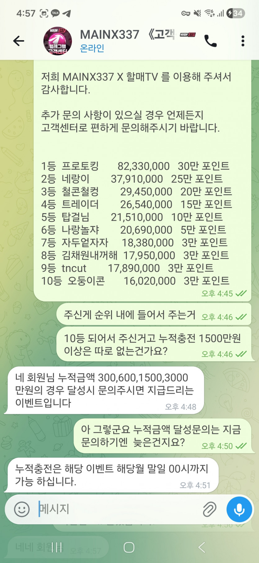 제가 메인 2월 입출 1600넘었는데 오둥이콘 3 46 2026-03-02 10:56:23 운 좋게 10위했는데 누적은 왜 안주냐 했더니 넘으면 문의하는거라고 ㅋㅋ 공지는 안보이고 텔레에도 안보이고 2월내 고객센터에 문의하는거라고 이새끼들 조용히 규정 1.4배 이상 2개 1.5개 2개로 바꿔서 포인트 회수하고 다시벳할때마다 터져서 40콩 20콩 각각터진 어제 개빡쳐서 메인에서 타 보증으로 갈아타려다가 중간에 참은..