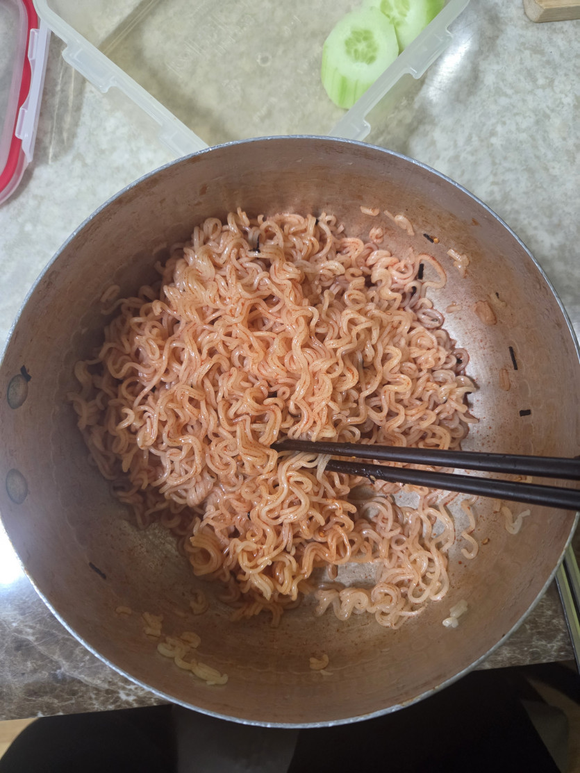 야식으로 비빔면 먹는 중입니다 주말 성토하시길