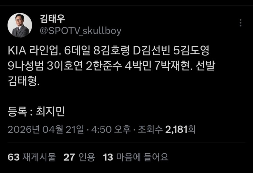 기아 확정 라인업