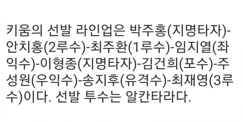 키움 확정 라인업
