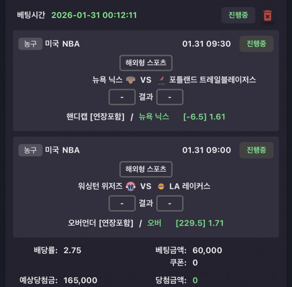닉스 6.5마핸승 랄 229.5옵 2.75배