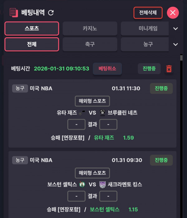 뉴욕 승 보스턴 승 유타 승