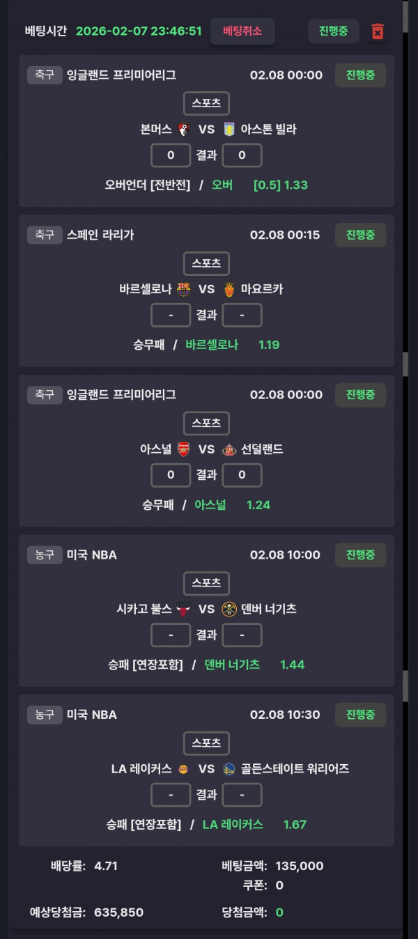 본머스전반옵 바르샤아스날덴버랄