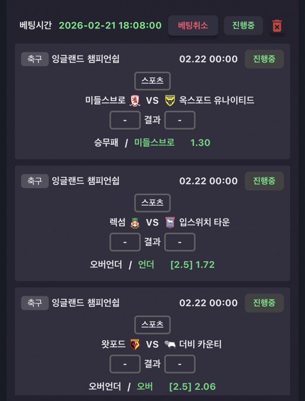 미들스브로 승 렉섬2.5언더 왓포드2.5옵