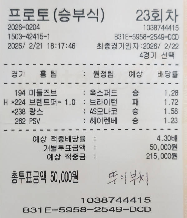 미들승 브라이턴플핸 랑스승 psv승